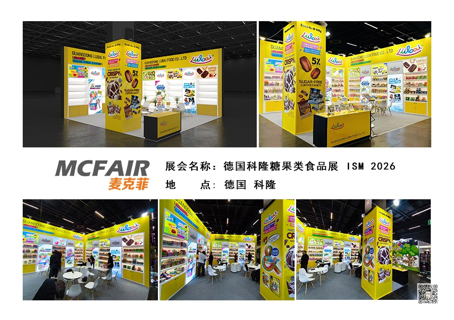 本届展会,麦克菲展览再次为绿白和Youka提供了专业的德国科隆国际糖果及休闲食品展览会ISM 2026的展位搭建服务,现场如期完工,并交付客户使用。