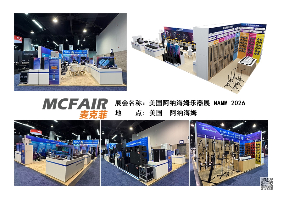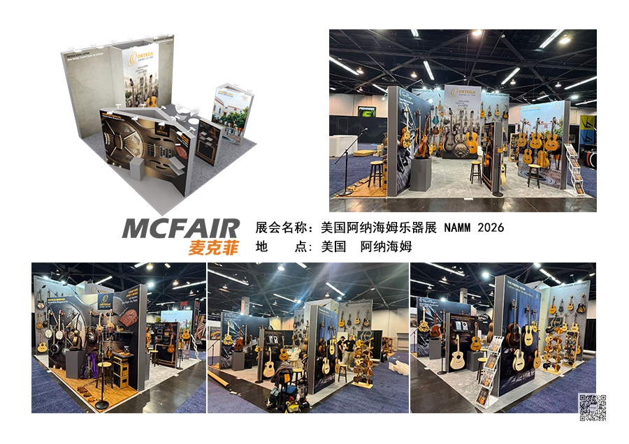 本届展会,麦克菲展览再次为多个展位提供了美国阿纳海姆乐器展(NAMM Show 2026)的展位搭建服务,现场如期完工,并交付客户使用。